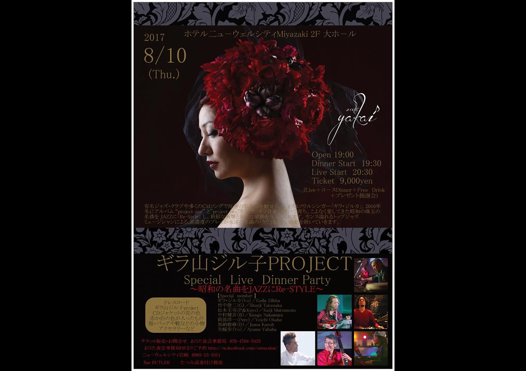 ギラ山ジル子PROJECT Special Live Dinner Paety ギラ山ジル子PROJECT Special Live Dinner Paety 日付 2017年8月10日(木) 出演 ギラ山ジル子PROJECT 会場 New Wel City 大ホール