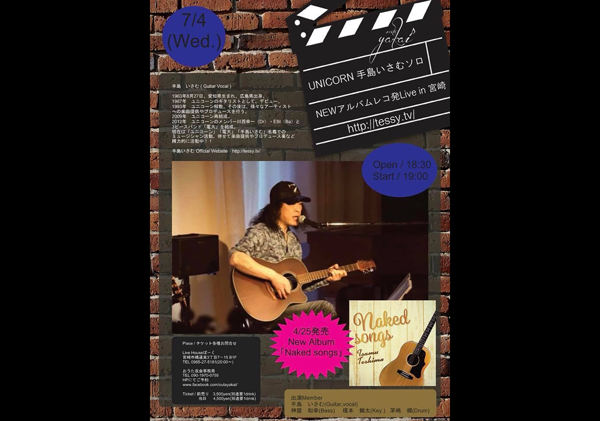 手島いさむ(UNICORN) Acoustic Live in MIYAZAKI 手島いさむ(UNICORN) Acoustic Live in MIYAZAKI 出演 手島いさむ(UNICORN) / KAMIYA AKIRA 榎本鱒太 会場 Live House ぱ〜く