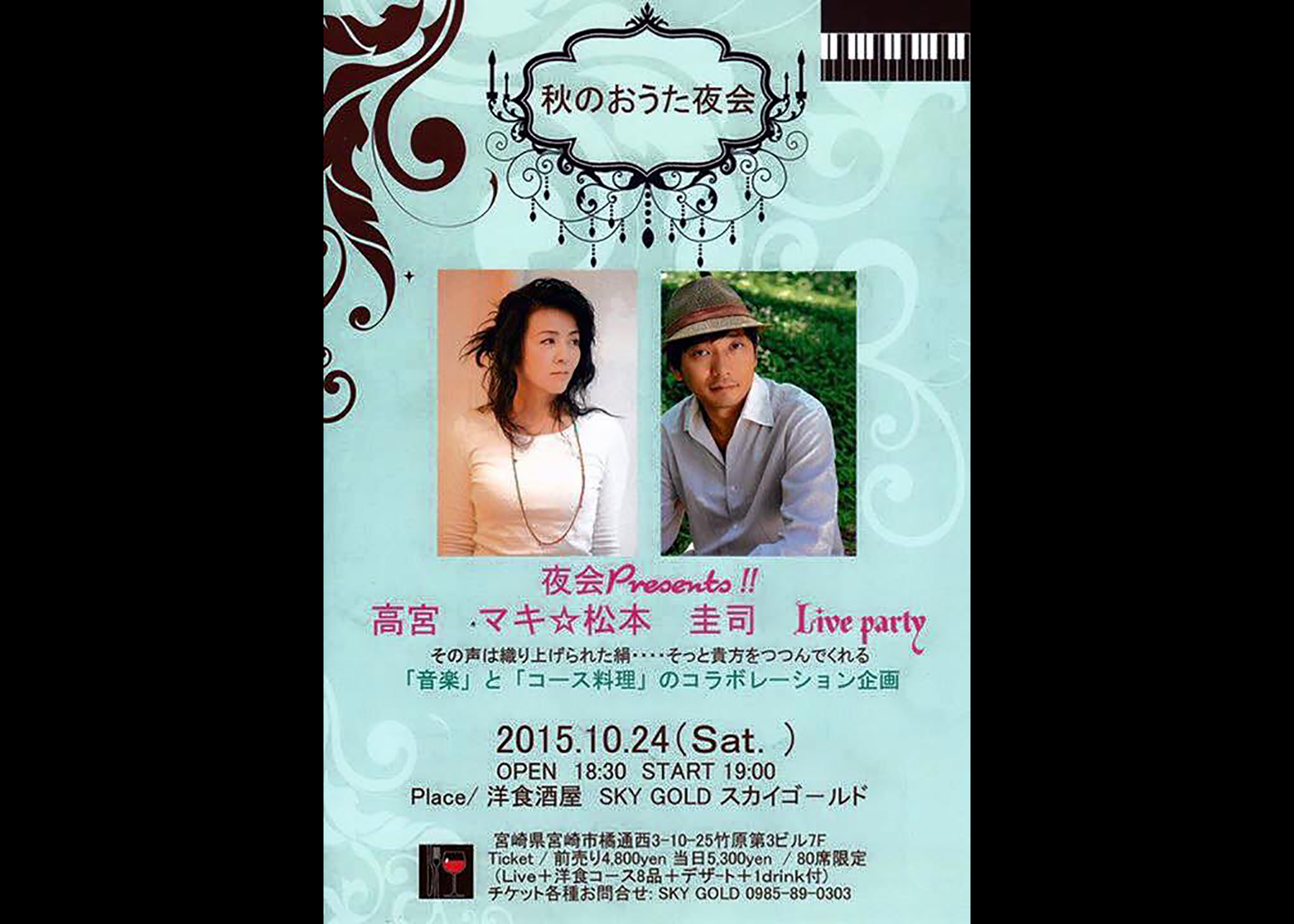 高宮マキ 松本圭司 Live Party 高宮マキ 松本圭司 Live Party 日付 2015年10月24日(土) 出演 高宮マキ 松本圭司 / KAMIYA 豊島大貴 谷口善彦 会場 SKY GOLD